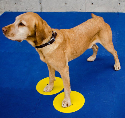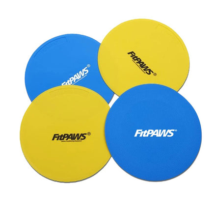 There are 4 discs 10 inch in the set 2 blue and 2 yellow, the colors dogs see best!